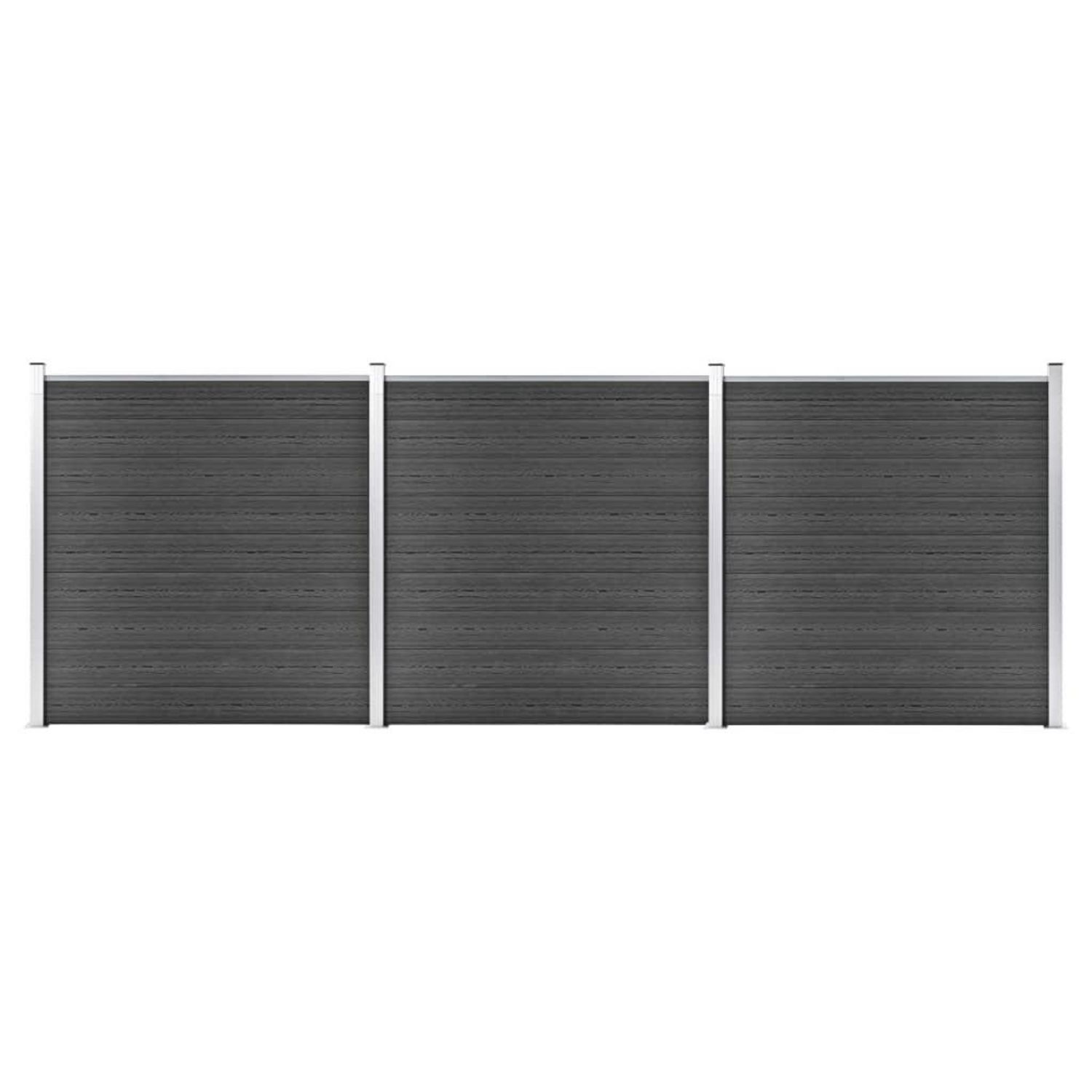Ensemble de panneau de cloture WPC 526x186 cm Noir