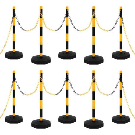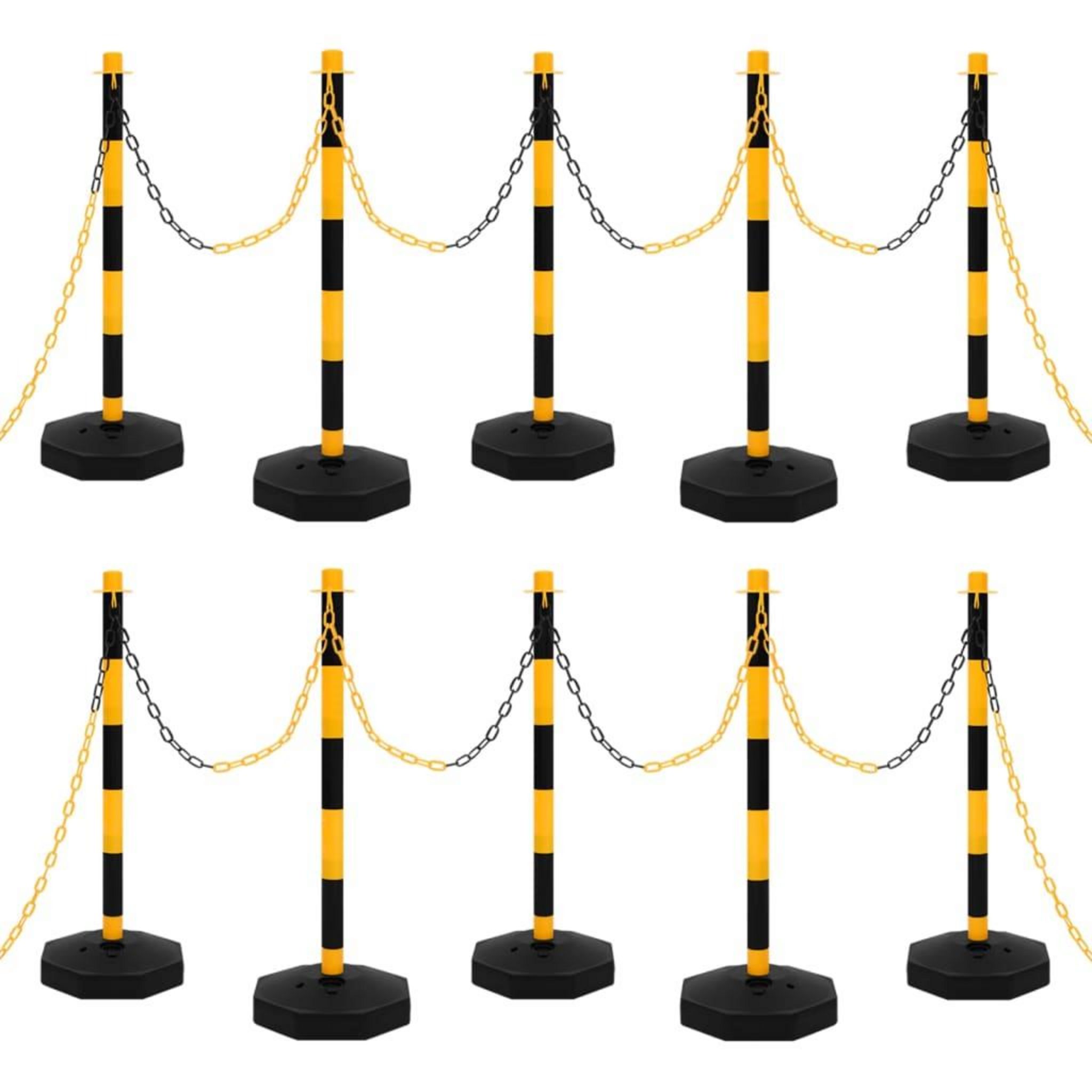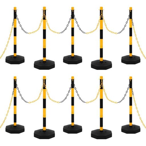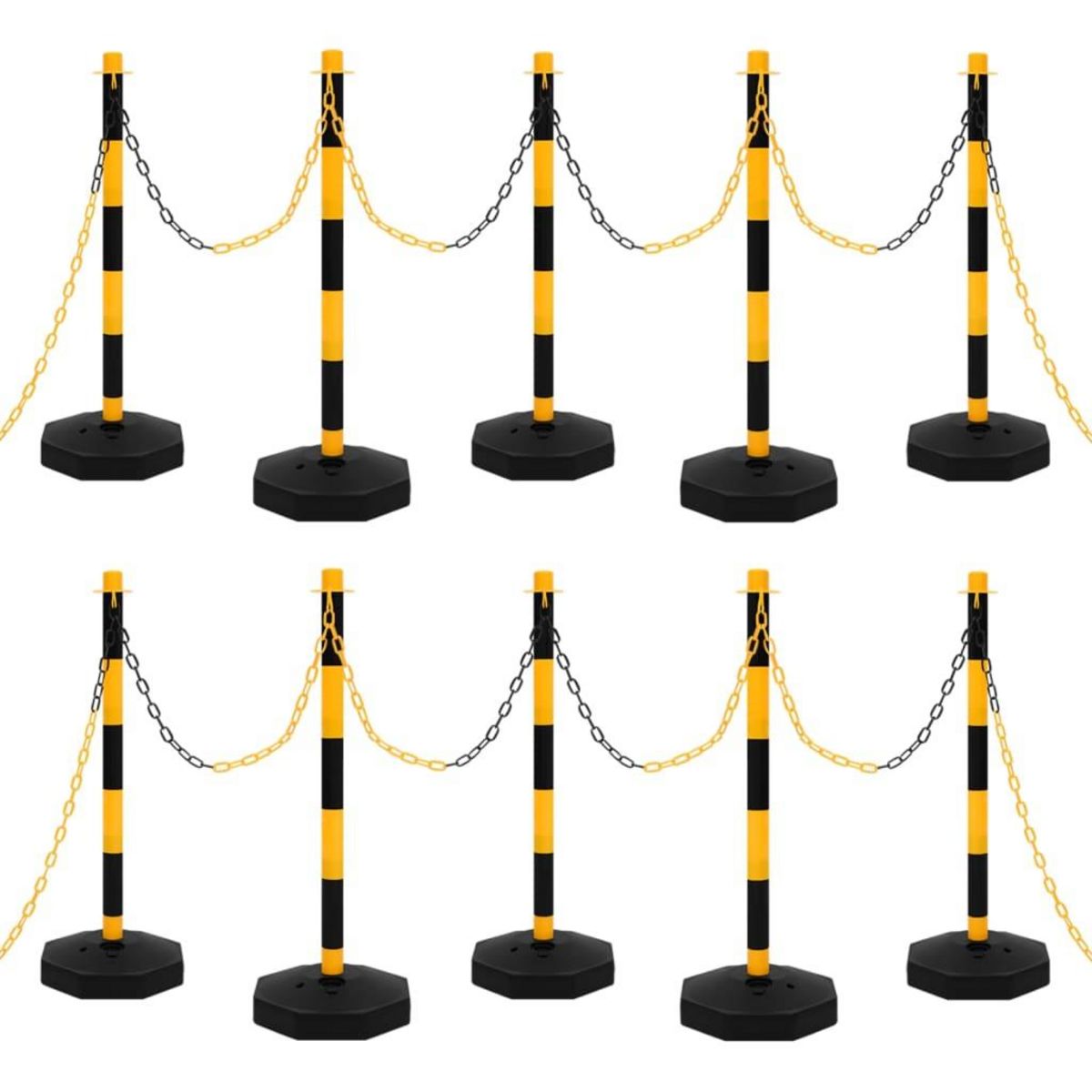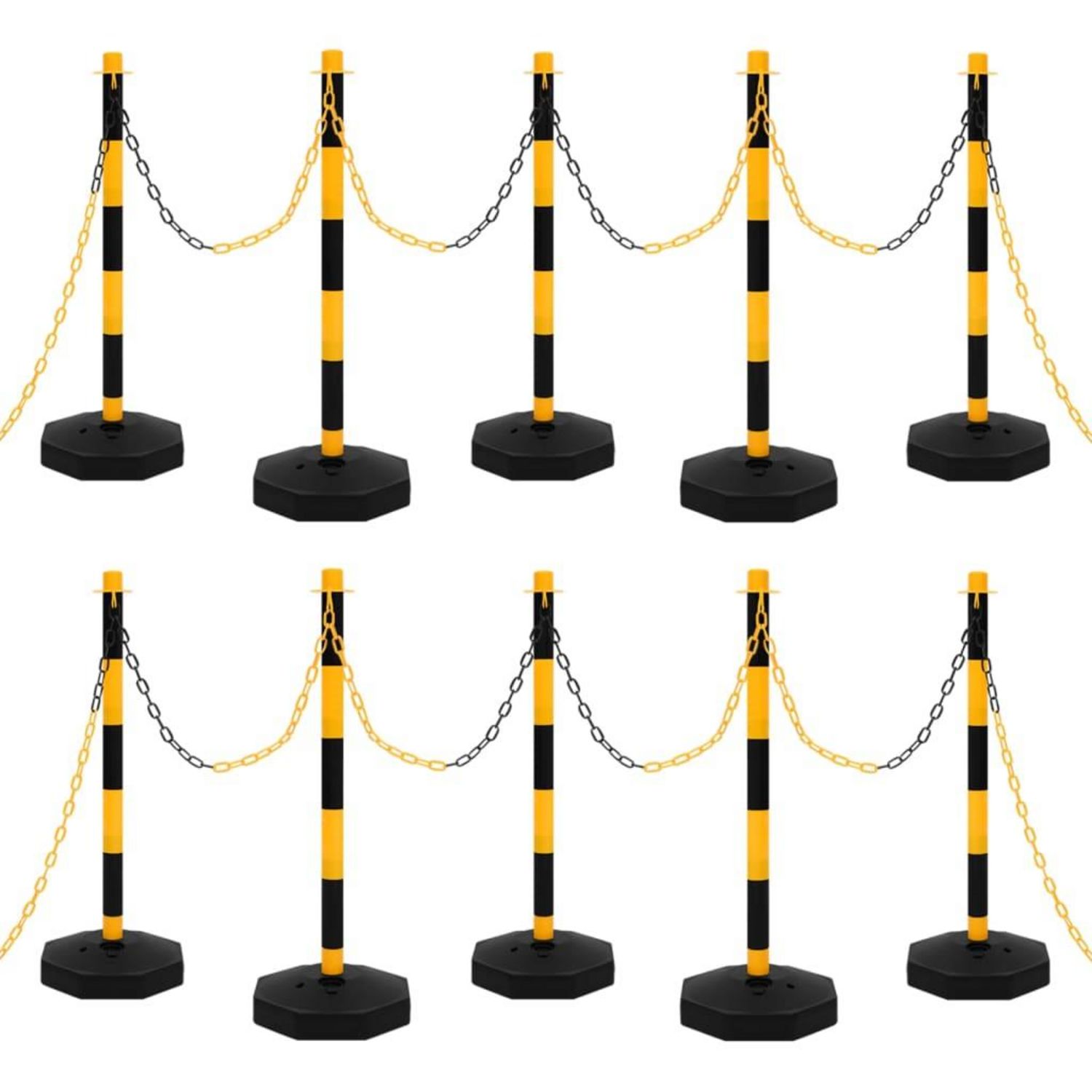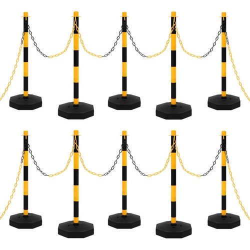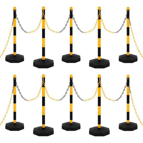 La chaîne en plastique de 10 m peut etre facilement fixee aux poteaux de circulation pour creer une zone restreinte. L'ensemble est leger, donc tres portable. Pour plus de stabilite, la base incluse peut etre remplie d'eau ou de sable. Les couleurs vives rendent l'ensemble de poteaux de signalisation tres visible meme dans des conditions de faible luminosite.