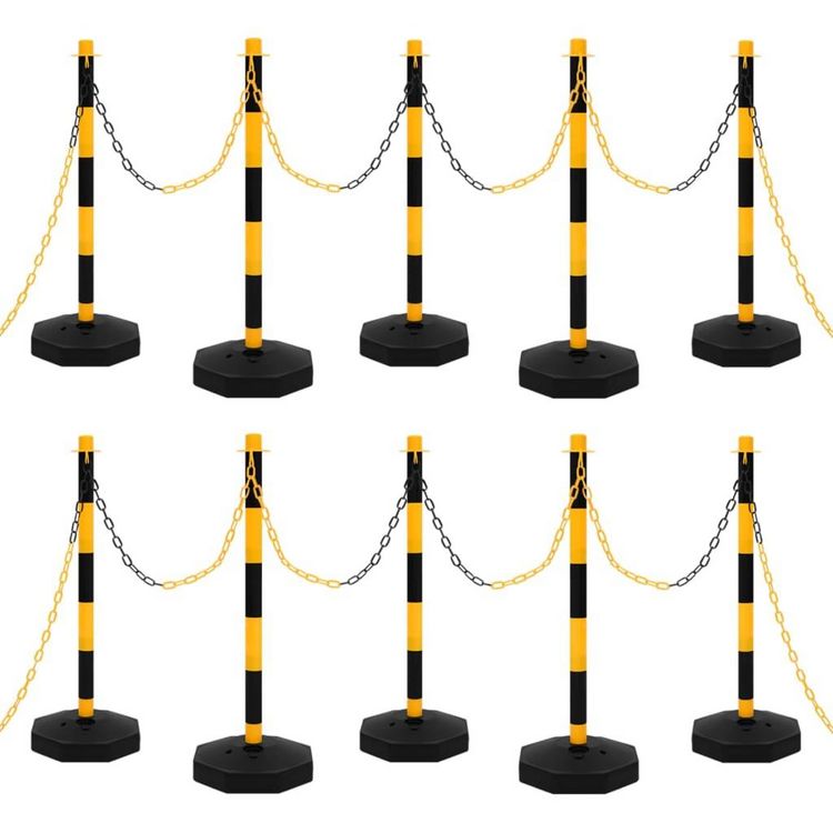 Cet ensemble de poteaux a chaîne est conçu comme un moyen economique mais efficace de restreindre certaines zones. Il convient aux parkings, entrepots, espaces publics et voies privees, etc. La chaîne en plastique de 10 m peut etre facilement fixee aux poteaux de circulation pour creer une zone rest