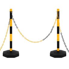 La chaîne en plastique de 10 m peut etre facilement fixee aux poteaux de circulation pour creer une zone restreinte. L'ensemble est leger, donc tres portable. Pour plus de stabilite, la base incluse peut etre remplie d'eau ou de sable. Les couleurs vives rendent l'ensemble de poteaux de signalisation tres visible meme dans des conditions de faible luminosite.