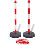 La chaîne en plastique de 10 m peut etre attachee facilement aux poteaux de circulation pour creer une zone restreinte. Les poteaux de balisage sont legers, donc faciles a transporter. Pour plus de stabilite, la base incluse peut etre remplie d'eau ou de sable. Les couleurs rouge et blanche brillantes rendent l'ensemble de poteaux de balisage tres visible.