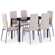 Cet ensemble de table a manger, compose de 7 pieces, a un design moderne et elegant et est parfait pour ceux qui cherchent a ajouter une touche de style a leur interieur. Le dessus de table est en verre trempe a haute resistance, facile a nettoyer. Chaque chaise est recouverte de similicuir de quali