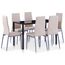 Le dessus de table est en verre trempe a haute resistance, facile a nettoyer. Chaque chaise est recouverte de similicuir de qualite. Le siege souple et rembourre est tres confortable.