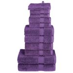 Cet ensemble de serviettes est idéal pour un usage domestique et commercial. Matériau super doux et de qualité supérieure : ces serviettes sont fabriquées à 100 % en coton filé à l'anneau, qui est doux, durable et résistant à la décoloration. Elles sont certifiées OEKO-TEX STANDARD 100 et testées pour les substances nocives, ce qui les rend dignes de confiance et fiables à utiliser.Absorbant : le tissu en coton doux rend ces serviettes de bain plus absorbantes. Elles absorbent plus d'eau pendant le nettoyage.Boucle de suspension pratique : ces serviettes sont livrées avec une boucle de suspension attachée pour chacun, ce qui facilite leur rangement sur des crochets ou des porte-serviettes.Lavable en machine : ces serviettes de visage en coton sont parfaitement adaptées à la machine et peuvent être facilement lavées avec de l'eau chaude et un peu de savon.Utilisation polyvalente : cet ensemble de serviettes de bain répond à différents besoins grâce à sa douceur et à sa durabilité. Ces serviettes sont polyvalentes et fiables pour les soins de beauté ou les tâches de nettoyage quotidiennes. Couleur : violetMatériau : 100 % cotonTaille du gant de toilette : 15 x 21 cm (l x L)Taille de l'essuie-mains : 30 x 30 cm (l x L)Taille de la serviette pour invités : 30 x 50 cm (l x L)Taille de la serviette à main : 50 x 100 cm (l x L)Taille de la serviette de douche : 70 x 140 cm (l x L)Qualité supérieure600 g/m²Certifié par STANDARD 100 par OEKO-TEXLavable en machineGamme : SOLUNDLa livraison contient :2 x gant de toilette2 x serviette de savon2 x serviette d'invité4 x essuie-mains2 x serviette de doucheCouleur : violetMatériau : 100 % cotonTaille du gant de toilette : 15 x 21 cm (l x L)Taille de l'essuie-mains : 30 x 30 cm (l x L)Taille de la serviette pour invités : 30 x 50 cm (l x L)Taille de la serviette à main : 50 x 100 cm (l x L)Taille de la serviette de douche : 70 x 140 cm (l x L)Qualité supérieure600 g/m²Certifié par STANDARD 100 par OEKO-TEXLavable en machineGamme : SOLUNDLa livraison contient :2 x gant de toilette2 x serviette de savon2 x serviette d'invité4 x essuie-mains2 x serviette de douche