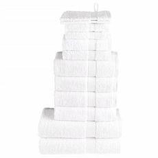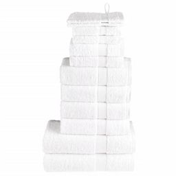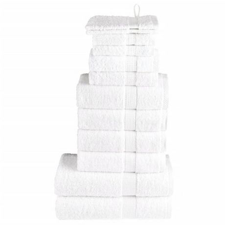 Cet ensemble de serviettes est idéal pour un usage domestique et commercial. Matériau super doux et de qualité supérieure : ces serviettes sont fabriquées à 100 % en coton filé à l'anneau, qui est doux, durable et résistant à la décoloration. Elles sont certifiées OEKO-TEX STANDARD 100 et testées pour les substances nocives, ce qui les rend dignes de confiance et fiables à utiliser.Absorbant : le tissu en coton doux rend ces serviettes de bain plus absorbantes. Elles absorbent plus d'eau pendant le nettoyage.Boucle de suspension pratique : ces serviettes sont livrées avec une boucle de suspension attachée pour chacun, ce qui facilite leur rangement sur des crochets ou des porte-serviettes.Lavable en machine : ces serviettes de visage en coton sont parfaitement adaptées à la machine et peuvent être facilement lavées avec de l'eau chaude et un peu de savon.Utilisation polyvalente : cet ensemble de serviettes de bain répond à différents besoins grâce à sa douceur et à sa durabilité. Ces serviettes sont polyvalentes et fiables pour les soins de beauté ou les tâches de nettoyage quotidiennes. Couleur : blancMatériau : 100 % cotonTaille du gant de toilette : 15 x 21 cm (l x L)Taille de l'essuie-mains : 30 x 30 cm (l x L)Taille de la serviette pour invités : 30 x 50 cm (l x L)Taille de la serviette à main : 50 x 100 cm (l x L)Taille de la serviette de douche : 70 x 140 cm (l x L)Qualité supérieure600 g/m²Certifié par STANDARD 100 par OEKO-TEXLavable en machineGamme : SOLUNDLa livraison contient :2 x gant de toilette2 x serviette de savon2 x serviette d'invité4 x essuie-mains2 x serviette de doucheCouleur : blancMatériau : 100 % cotonTaille du gant de toilette : 15 x 21 cm (l x L)Taille de l'essuie-mains : 30 x 30 cm (l x L)Taille de la serviette pour invités : 30 x 50 cm (l x L)Taille de la serviette à main : 50 x 100 cm (l x L)Taille de la serviette de douche : 70 x 140 cm (l x L)Qualité supérieure600 g/m²Certifié par STANDARD 100 par OEKO-TEXLavable en machineGamme : SOLUNDLa livraison contient :2 x gant de toilette2 x serviette de savon2 x serviette d'invité4 x essuie-mains2 x serviette de douche