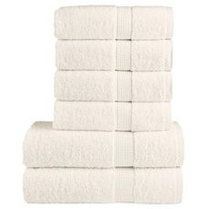 Cet ensemble de serviettes est idéal pour le nettoyage quotidien, partout et à tout moment. Matériau super doux et de qualité supérieure : ces serviettes sont fabriquées à 100 % en coton filé à l'anneau, qui est doux, durable et résistant à la décoloration. Elles sont certifiées OEKO-TEX STANDARD 100 et testées pour les substances nocives, ce qui les rend dignes de confiance et fiables à utiliser.Absorbant : le tissu en coton doux rend ces serviettes de bain plus absorbantes. Elles absorbent plus d'eau pendant le nettoyage.Boucle de suspension pratique : ces serviettes sont livrées avec une boucle de suspension attachée pour chacun, ce qui facilite leur rangement sur des crochets ou des porte-serviettes.Lavable en machine : ces serviettes de visage en coton sont parfaitement adaptées à la machine et peuvent être facilement lavées avec de l'eau chaude et un peu de savon.Utilisation polyvalente : cet ensemble de serviettes de bain répond à différents besoins grâce à sa douceur et à sa durabilité. Ces serviettes sont polyvalentes et fiables pour les soins de beauté ou les tâches de nettoyage quotidiennes. Couleur : crèmeMatériau : 100 % cotonTaille de la serviette à main : 50 x 100 cm (l x L)Taille de la serviette de douche : 70 x 140 cm (l x L)Qualité supérieure600 g/m²Certifié par STANDARD 100 par OEKO-TEXLavable en machineGamme : SOLUNDLa livraison contient :4 x essuie-mains2 x serviette de doucheCouleur : crèmeMatériau : 100 % cotonTaille de la serviette à main : 50 x 100 cm (l x L)Taille de la serviette de douche : 70 x 140 cm (l x L)Qualité supérieure600 g/m²Certifié par STANDARD 100 par OEKO-TEXLavable en machineGamme : SOLUNDLa livraison contient :4 x essuie-mains2 x serviette de douche