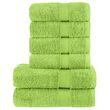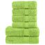 Cet ensemble de serviettes est idéal pour le nettoyage quotidien, partout et à tout moment. Matériau super doux et de qualité supérieure : ces serviettes sont fabriquées à 100 % en coton filé à l'anneau, qui est doux, durable et résistant à la décoloration. Elles sont certifiées OEKO-TEX STANDARD 100 et testées pour les substances nocives, ce qui les rend dignes de confiance et fiables à utiliser.Absorbant : le tissu en coton doux rend ces serviettes de bain plus absorbantes. Elles absorbent plus d'eau pendant le nettoyage.Boucle de suspension pratique : ces serviettes sont livrées avec une boucle de suspension attachée pour chacun, ce qui facilite leur rangement sur des crochets ou des porte-serviettes.Lavable en machine : ces serviettes de visage en coton sont parfaitement adaptées à la machine et peuvent être facilement lavées avec de l'eau chaude et un peu de savon.Utilisation polyvalente : cet ensemble de serviettes de bain répond à différents besoins grâce à sa douceur et à sa durabilité. Ces serviettes sont polyvalentes et fiables pour les soins de beauté ou les tâches de nettoyage quotidiennes. Couleur : vert pommeMatériau : 100 % cotonTaille de la serviette à main : 50 x 100 cm (l x L)Taille de la serviette de douche : 70 x 140 cm (l x L)Qualité supérieure600 g/m²Certifié par STANDARD 100 par OEKO-TEXLavable en machineGamme : SOLUNDLa livraison contient :4 x essuie-mains2 x serviette de doucheCouleur : vert pommeMatériau : 100 % cotonTaille de la serviette à main : 50 x 100 cm (l x L)Taille de la serviette de douche : 70 x 140 cm (l x L)Qualité supérieure600 g/m²Certifié par STANDARD 100 par OEKO-TEXLavable en machineGamme : SOLUNDLa livraison contient :4 x essuie-mains2 x serviette de douche