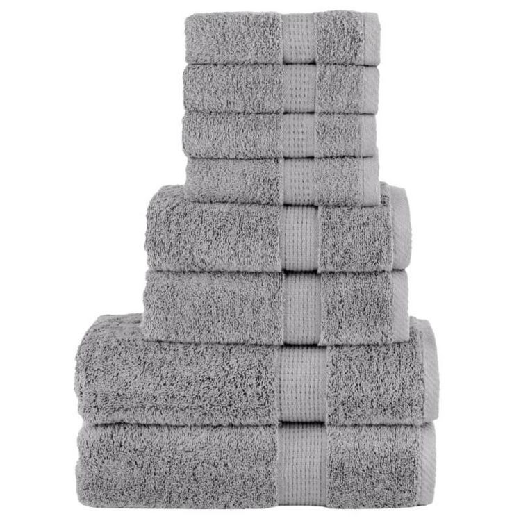 Cet ensemble de serviettes est idéal pour un usage domestique et commercial. Matériau super doux et de qualité supérieure : ces serviettes sont fabriquées à 100 % en coton filé à l'anneau, qui est doux, durable et résistant à la décoloration. Elles sont certifiées OEKO-TEX STANDARD 100 et testées pour les substances nocives, ce qui les rend dignes de confiance et fiables à utiliser.Absorbant : le tissu en coton doux rend ces serviettes de bain plus absorbantes. Elles absorbent plus d'eau pendant le nettoyage.Boucle de suspension pratique : ces serviettes sont livrées avec une boucle de suspension attachée pour chacun, ce qui facilite leur rangement sur des crochets ou des porte-serviettes.Lavable en machine : ces serviettes de visage en coton sont parfaitement adaptées à la machine et peuvent être facilement lavées avec de l'eau chaude et un peu de savon.Utilisation polyvalente : cet ensemble de serviettes de bain répond à différents besoins grâce à sa douceur et à sa durabilité. Ces serviettes sont polyvalentes et fiables pour les soins de beauté ou les tâches de nettoyage quotidiennes. Couleur : grisMatériau : 100 % cotonTaille de la serviette pour invités : 30 x 50 cm (l x L)Taille de la serviette à main : 50 x 100 cm (l x L)Taille de la serviette de douche : 70 x 140 cm (l x L)Qualité supérieure600 g/m²Certifié par STANDARD 100 par OEKO-TEXLavable en machineGamme : SOLUNDLa livraison contient :4 x serviette d'invité2 x essuie-mains2 x serviette de doucheCouleur : grisMatériau : 100 % cotonTaille de la serviette pour invités : 30 x 50 cm (l x L)Taille de la serviette à main : 50 x 100 cm (l x L)Taille de la serviette de douche : 70 x 140 cm (l x L)Qualité supérieure600 g/m²Certifié par STANDARD 100 par OEKO-TEXLavable en machineGamme : SOLUNDLa livraison contient :4 x serviette d'invité2 x essuie-mains2 x serviette de douche