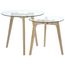 Les dessus de table sont en verre trempe renforce, tres resistant, lisse et facile a essuyer. Vous pouvez y placer vos boissons, vases, fruits et autres. Les tables sont soutenues par des pieds en bois de chene massif, qui est d'une grande stabilite et durabilite. De taille compacte, peu encombrant et leger, facile a deplacer et a transporter, cet ensemble de tables d'appoint peut servir de table a manger, de table basse, de table de lecture a la maison et au bureau.