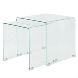 Ensemble de tables gigognes 2 Pieces Verre trempe Transparent