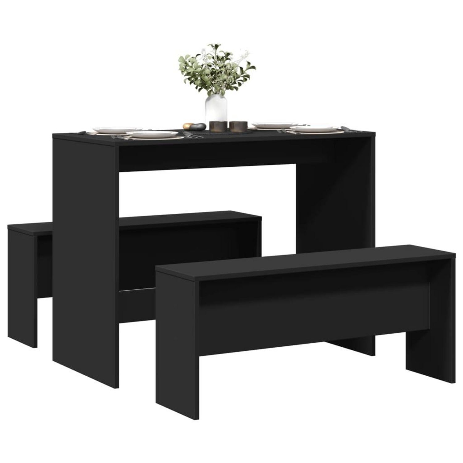 Ensemble table a manger et bancs 3 pcs noir bois d'ingenierie