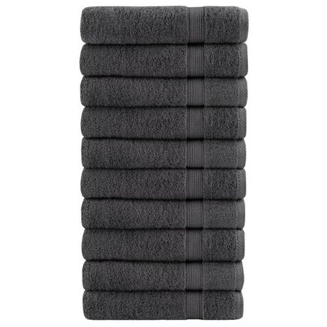 Ces essuie-mains sont idéaux pour le nettoyage quotidien, partout et à tout moment. Matériau super doux et de qualité supérieure : ces serviettes sont fabriquées à 100 % en coton filé à l'anneau, qui est doux, durable et résistant à la décoloration. Elles sont certifiées OEKO-TEX STANDARD 100 et testées pour les substances nocives, ce qui les rend dignes de confiance et fiables à utiliser.Absorbant : le tissu en coton doux rend ces serviettes de bain plus absorbantes. Elles absorbent plus d'eau pendant le nettoyage.Boucle de suspension pratique : ces serviettes sont livrées avec une boucle de suspension attachée pour chacun, ce qui facilite leur rangement sur des crochets ou des porte-serviettes.Lavable en machine : ces serviettes de visage en coton sont parfaitement adaptées à la machine et peuvent être facilement lavées avec de l'eau chaude et un peu de savon.Utilisation polyvalente : ces serviettes répondent à différents besoins grâce à leur douceur et à leur durabilité. Ces serviettes sont polyvalentes et fiables pour les soins de beauté ou les tâches de nettoyage quotidiennes. Couleur : anthraciteMatériau : 100 % cotonTaille : 50 x 100 cm (l x L)Qualité supérieure600 g/m²Certifié par STANDARD 100 par OEKO-TEXLavable en machineGamme : SOLUNDLa livraison contient :10 x essuie-mainsCouleur : anthraciteMatériau : 100 % cotonTaille : 50 x 100 cm (l x L)Qualité supérieure600 g/m²Certifié par STANDARD 100 par OEKO-TEXLavable en machineGamme : SOLUNDLa livraison contient :10 x essuie-mains