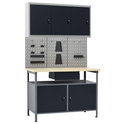 Cet ensemble est combine avec 1 etabli, 3 panneaux muraux et 1 armoire murale, qui seront une solution de rangement pratique pour votre atelier et votre garage.