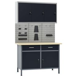 Cet ensemble est combine avec 1 etabli, 3 panneaux muraux et 1 armoire murale, qui seront une solution de rangement pratique pour votre atelier et votre garage.