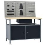 Cet ensemble est combine avec 1 etabli et 3 panneaux muraux et constitue une solution de rangement pratique pour votre atelier et votre garage.