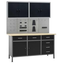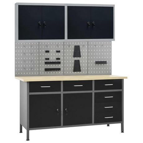 Cet ensemble est combine avec 1 etabli, 4 panneaux muraux et 2 armoires murales, qui seront une solution de rangement pratique pour votre atelier et votre garage.