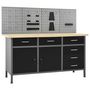 Cet ensemble est combine avec 1 etabli et 4 panneaux muraux et constitue une solution de rangement pratique pour votre atelier et votre garage.
