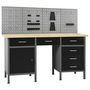 Cet ensemble est combine avec 1 etabli et 4 panneaux muraux et constitue une solution de rangement pratique pour votre atelier et votre garage.