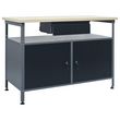 Le dessus de table large et robuste offre une plate-forme stable pour tous vos travaux de reparation. L'etabli a un compartiment ouvert equipe d'un tiroir, vous permettant de bien organiser vos outils, pieces et accessoires tels que vis, clous et ruban adhesif. Il y a des compartiments appropries pour les outils plus grands, les 2 armoires avec portes verrouillables, qui peuvent facilement accueillir des perceuses, des tambours de cable et des meuleuses.