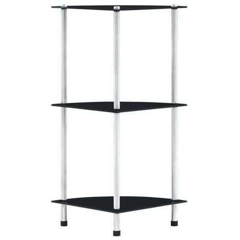 Etagere 3 niveaux Noir 30x30x67 cm Verre trempe