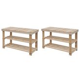 Etagere a chaussures 2 en 1 avec dessus banc 2 pcs Bois massif