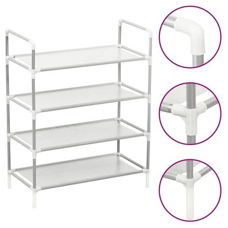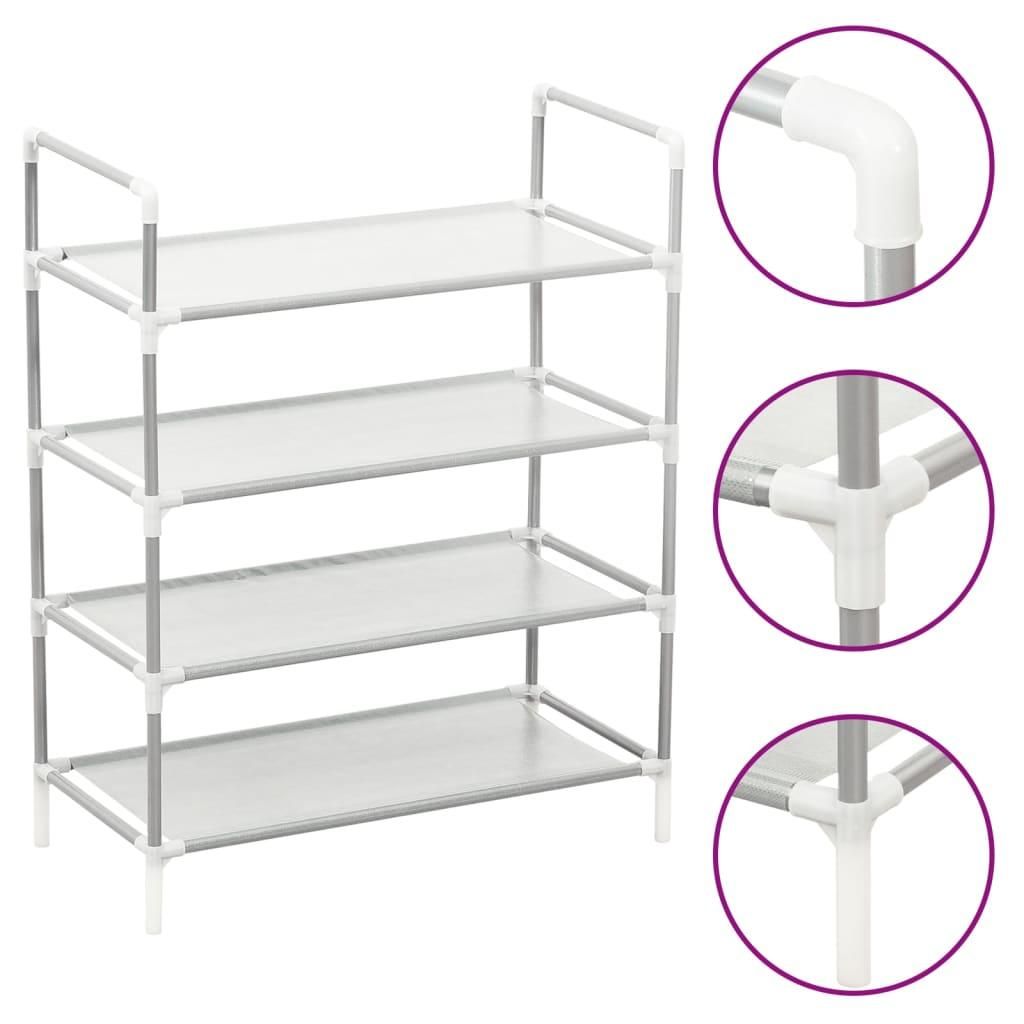 Etagere a chaussures 4 etageres Metal et tissu intisse Argente