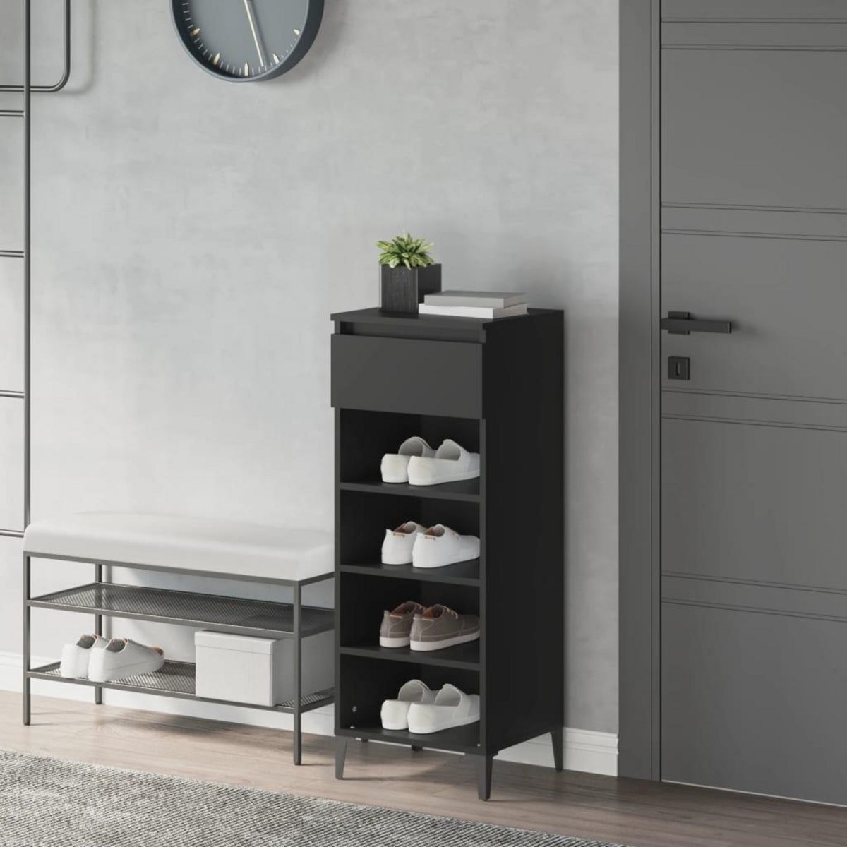 - Structure stable : les pieds en metal de ce meuble a chaussures ajoutent un style industriel et calme a votre interieur tout en assurant la stabilite.