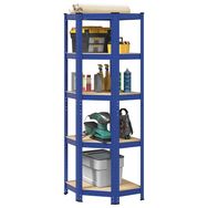 Etagere d'angle a 5 niveaux Bleu Acier et bois d'ingenierie