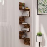 Etagere d'angle murale chene fume 19x19x123cm bois d'ingenierie