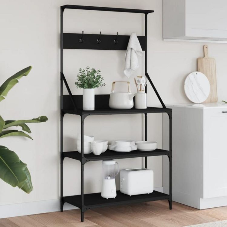 L'Étagère de boulangerie et crochets 4 niveaux de VIDAXL est conçue avec des matériaux robustes et durables, combinant le bois d'ingénierie et le métal. Le bois d'ingénierie offre une surface lisse et assure une résistance exceptionnelle, une stabilité et une résistance à l'humidité, tandis que le cadre métallique renforce la robustesse et la stabilité de l'étagère. Avec une couleur noire élégante, cet élément de rangement s'intègre parfaitement dans n'importe quelle cuisine moderne.
