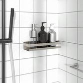 Idéale pour shampoings, gels douche ou rasoirs, cette étagère maximise l'espace sans encombrer la cabine. Sa surface légèrement inclinée facilite l'écoulement de l'eau pour un séchage rapide.