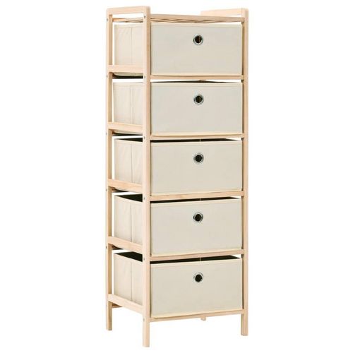 Etagere de rangement 5 paniers tissu bois de cedre beige