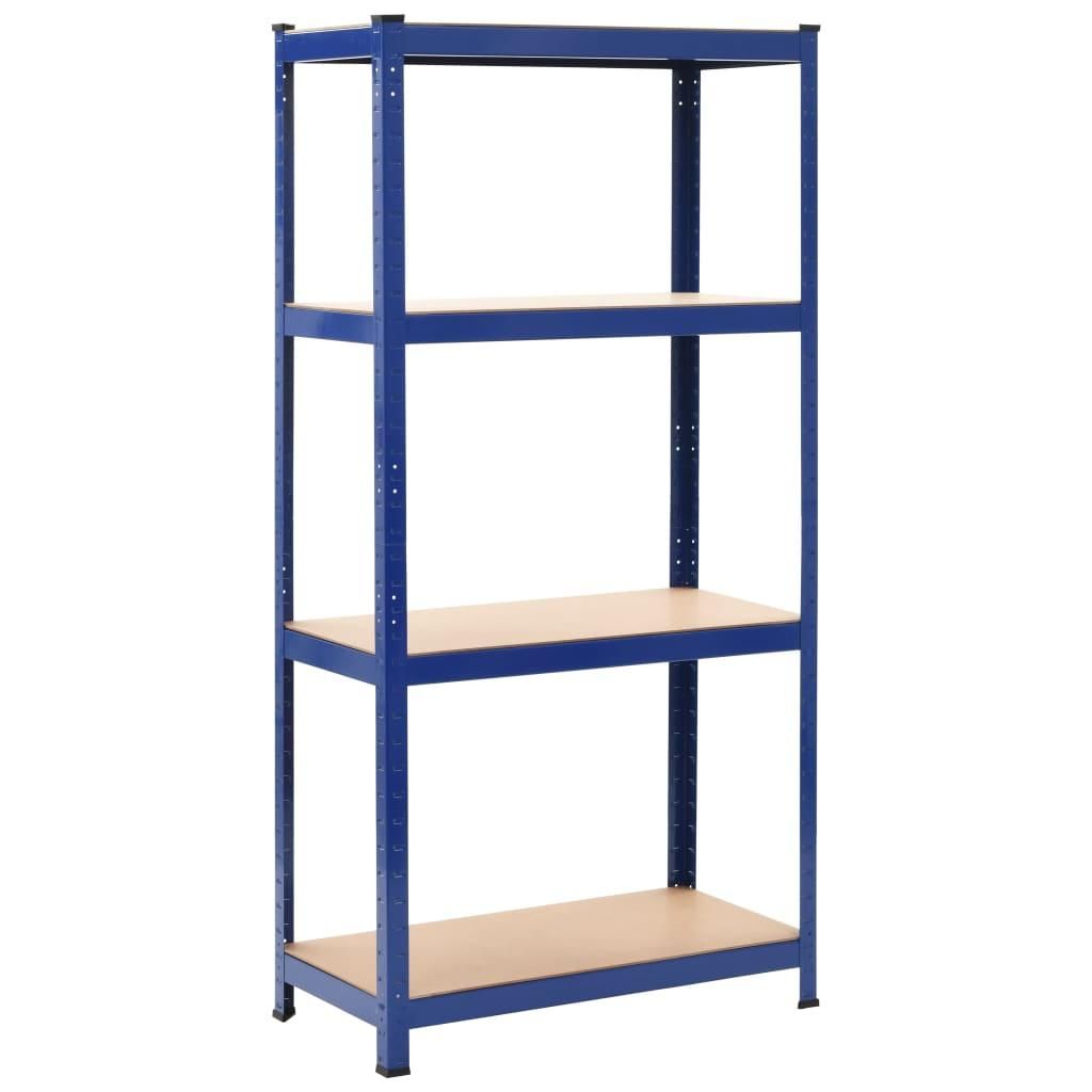 Etagere de rangement a 4 niveaux Bleu Acier et bois ingenierie