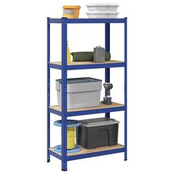 Etagere de rangement a 4 niveaux Bleu Acier et bois ingenierie