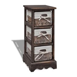 Ce magnifique support de rangement marron, a 3 couches, en bois de haute qualite presente un design simple mais elegant. Il stocke non seulement vos affaires mais ameliore egalement le decor de votre chambre. Livre avec trois paniers en tissage, ce support en bois durable vous offre suffisamment d'e