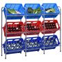 La conception inclinee permet de voir et d'obtenir facilement le contenu a l'interieur de la caisse. Ce support a caisses convient a 9 caisses d'epicerie, caisses a boissons Euro ou caisses standardisees.