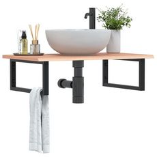 L'etagere murale pour vasque se fixe solidement au mur, offrant une solution elegante et peu encombrante pour votre salle de bains. Robuste et durable : cette etagere de lavabo est associee a une structure en acier et a un plateau en bois de chene massif, ce qui la rend robuste, stable et durable.Ga