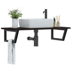 L'etagere murale pour vasque se fixe solidement au mur, offrant une solution elegante et peu encombrante pour votre salle de bains. Robuste et durable : cette etagere de lavabo est associee a une structure en acier et a un plateau en bois de chene massif, ce qui la rend robuste, stable et durable.Ga