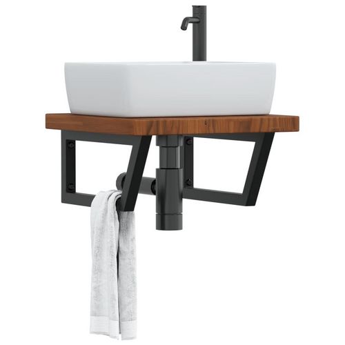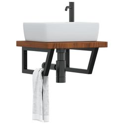 L'etagere murale pour vasque se fixe solidement au mur, offrant une solution elegante et peu encombrante pour votre salle de bains. Robuste et durable : cette etagere de lavabo est associee a une structure en acier et a un plateau en bois de chene massif, ce qui la rend robuste, stable et durable.