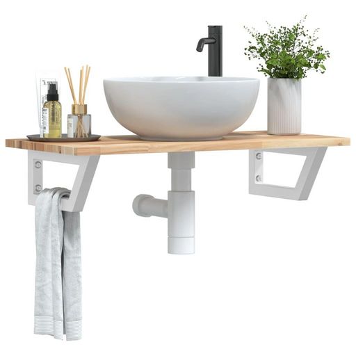 L'etagere murale pour vasque se fixe solidement au mur, offrant une solution elegante et peu encombrante pour votre salle de bains. Robuste et durable : cette etagere de lavabo est associee a une structure en acier et a un plateau en bois massif d'acacia, ce qui la rend robuste, stable et durable.Ga