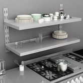Notre etagere murale a 2 niveaux en acier inoxydable est non seulement elegante mais tres fonctionnelle, ce qui sera un excellent choix pour ceux qui ont besoin d'espace de stockage supplementaire dans les cuisines. Elle est un endroit parfait pour conserver les assiettes, les plats, ainsi que divers autres ustensiles de cuisine.