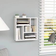 Cette etagere flottante moderne comporte 5 compartiments, ce qui en fait un endroit ideal pour conserver vos livres, DVD ou autres objets en toute securite. Cette etagere murale, faite d'un panneau solide, est robuste et durable. Elle est egalement facile a nettoyer avec un chiffon humide.