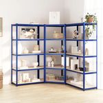 Etageres a 5 niveaux 3 pcs Bleu Acier et bois d'ingenierie