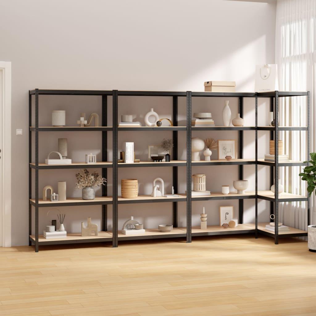 Etageres a 5 niveaux 4pcs Anthracite Acier et bois d'ingenierie