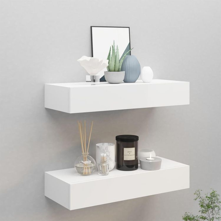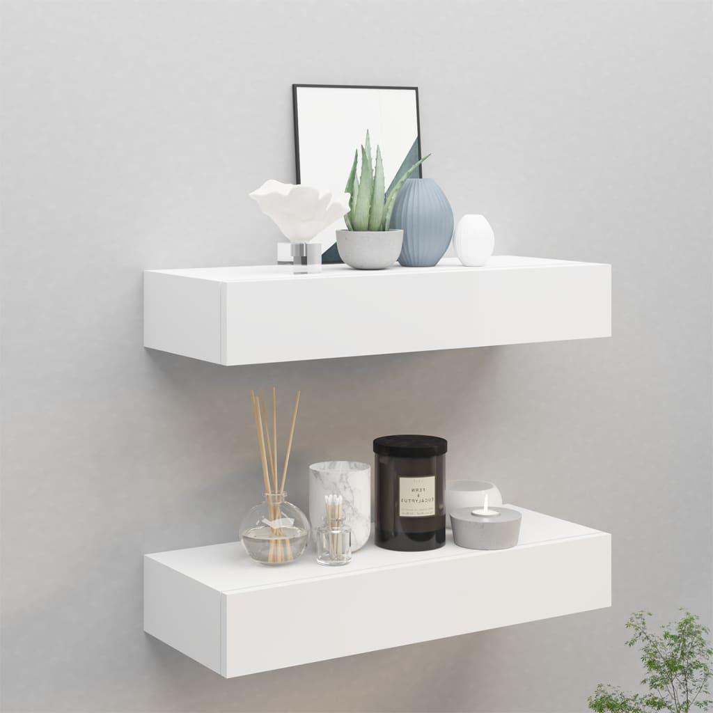 Etageres a tiroirs murales 2 pcs Blanc 60x23,5x10 cm MDF
