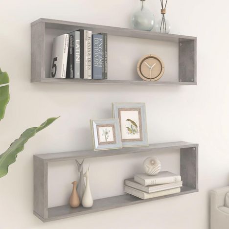 Etageres cube murales 2 pcs gris beton bois d'ingenierie