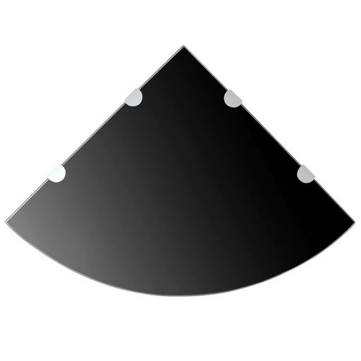 Etageres d'angle 2 pcs et supports chromes Verre Noir 45x45 cm