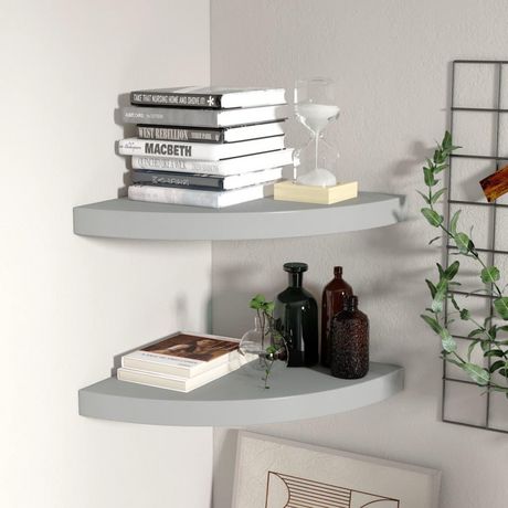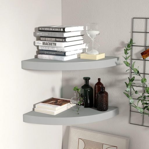 Etageres d'angle flottantes 2 pcs gris 35x35x3,8 cm MDF