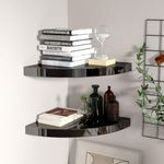 Etageres d'angle flottantes 2pcs noir brillant 35x35x3,8 cm MDF
