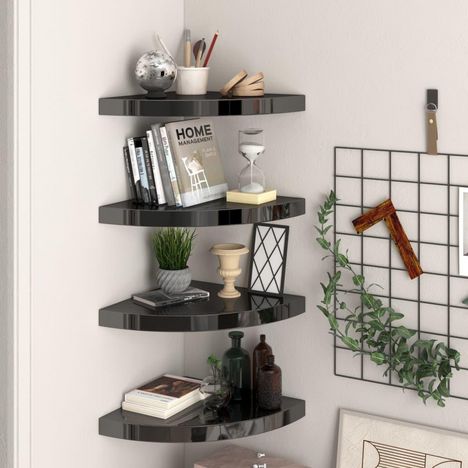 Cet ensemble de 4 etageres d'angle elegantes est ideal pour afficher vos livres preferes, decorations, photos, prix, etc.